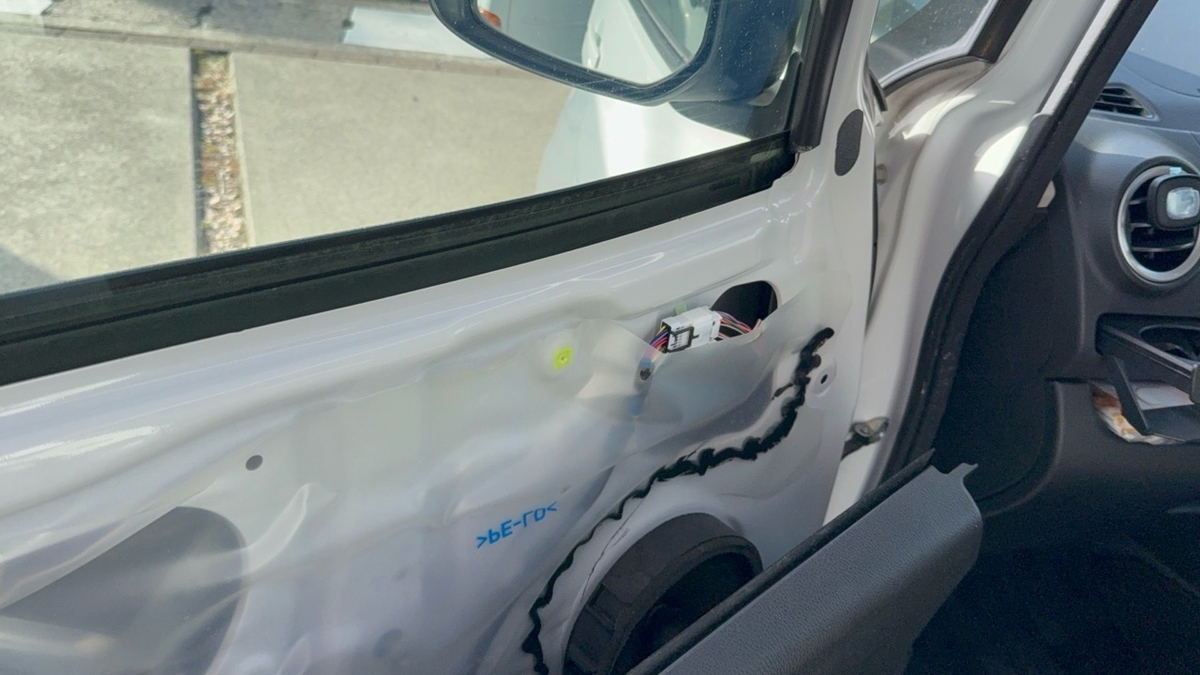 まずはドアの内張を剥がして車からミラーを外す。